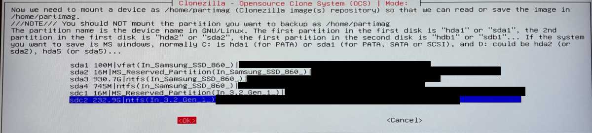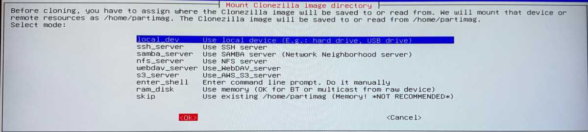 Now we need to mount a device as /home/partimag (Clonezilla image(s) repository) so that we can read or save the image in /home/partimag.