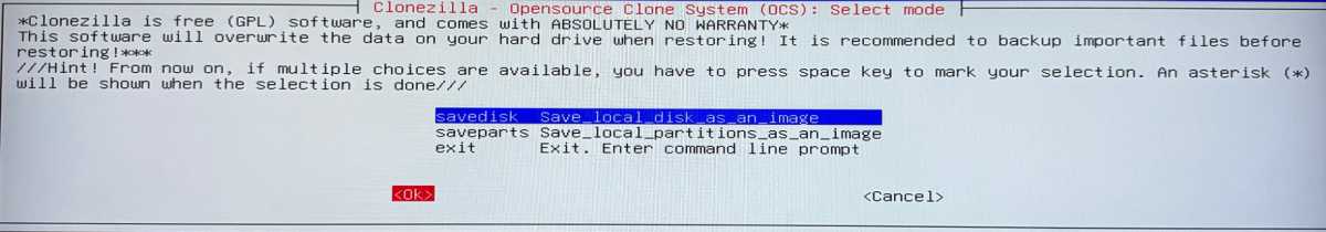 device-image work with disks or partitions using images to copy the entire drive into a folder with the image to be stored laterdevice-device work directly from a disk or partition to a disk or partition if you want to clone one drive to another, such as buying a new drive because your current OS drive is running out of space and you just want the whole new drive to act exactly like the old oneBefore cloning, you have to assign where the Clonezilla image will be saved to or read from.