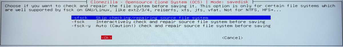 -sfsck Skip checking/repairing source file systemAfter the image is saved, do you want to check if the image is restorable?
