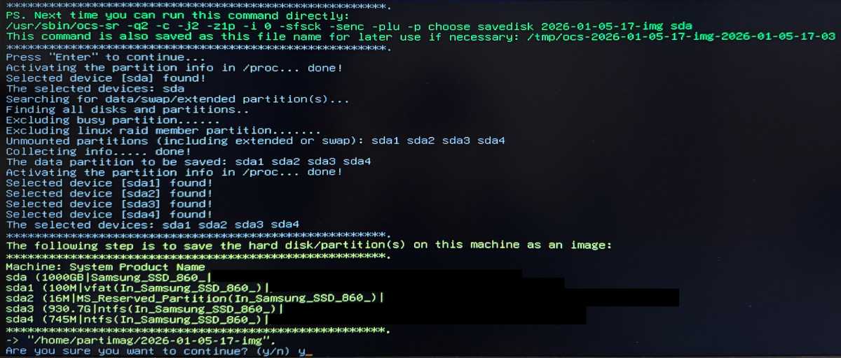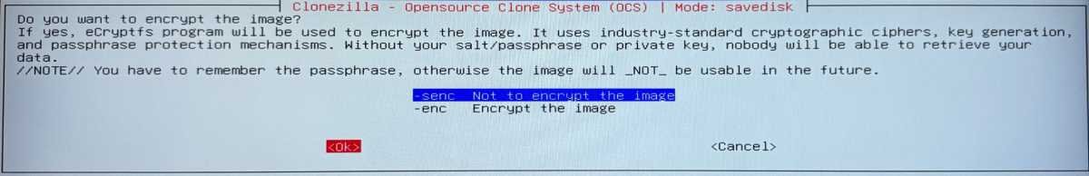 -senc Not to encrypt the imageDo you want to copy the log files to Clonezilla live USB drive if it exists in this machine?
