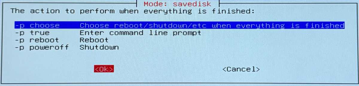 I chose -p choose Choose reboot/shutdown/etc when everything is finished