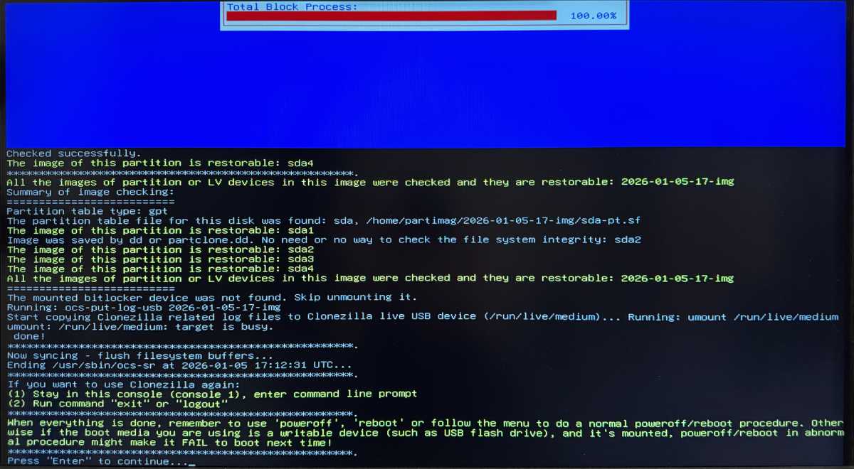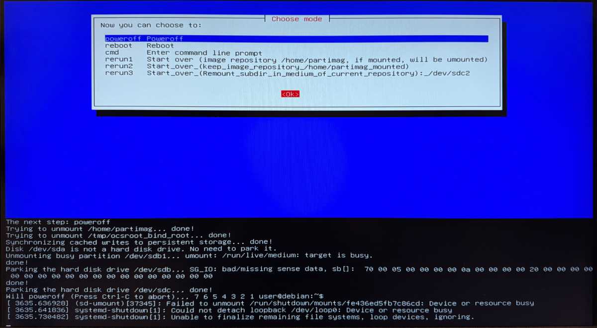 -plu Yes, copy log files to Clonezilla live USB drive if it existsThe action to perform when everything is finished: